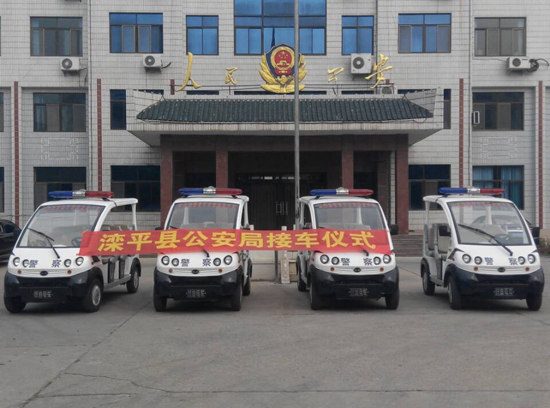 2014年9月10日,广东承德滦平县公安局针对近期街面的治安特点,推出打击两抢一盗的一项巡逻防控新措施。为此,购置了4辆由广东沐鸣2电动车有限公司生产的沐鸣2 电动巡逻车 。 广东滦平县公安局电动巡逻车发车 这款警用电动巡..