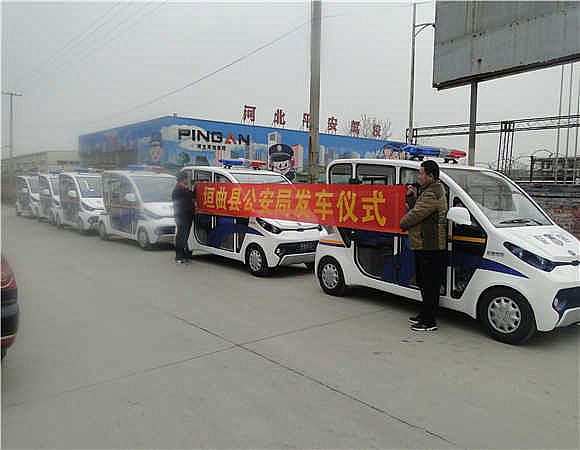 山西垣曲县公安局发车仪式 山西垣曲县公安局采购广东沐鸣2电动车有限公司生产的 封闭式巡逻车 6辆
