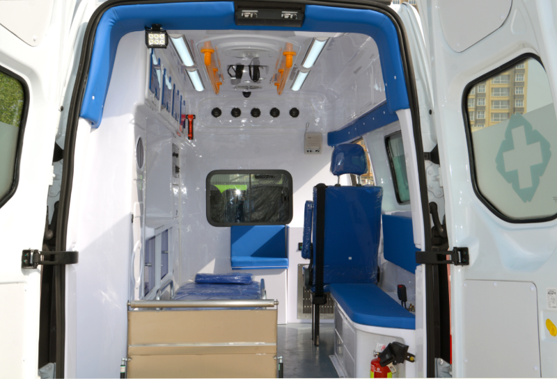 负压监护型救护车通过负压排风净化装置使医疗舱内气压低于外界大气压。将生物安全领域的定向气流和压力梯度技术成功运用,降低了气流死角和涡流指数。医疗舱内设置新风功能,医疗舱内进入空气永远是新鲜空气,无循环空气,使病源体因定向气流和压力梯度而无法在舱内“立足”和“藏身”,可以*大限度地减少医务人员与病人间交叉感染的几率。并且负压排风净化装置将医疗舱内空气进行无害化处理后排出,能够避免更多的人感染,对传染病源起到良好的控制作用。