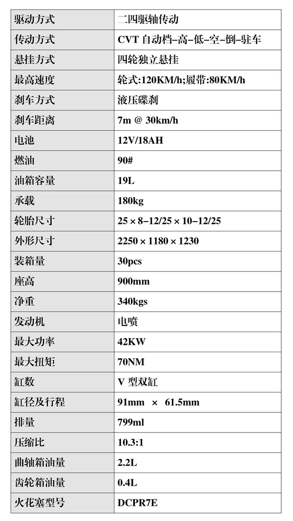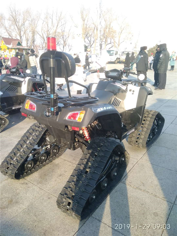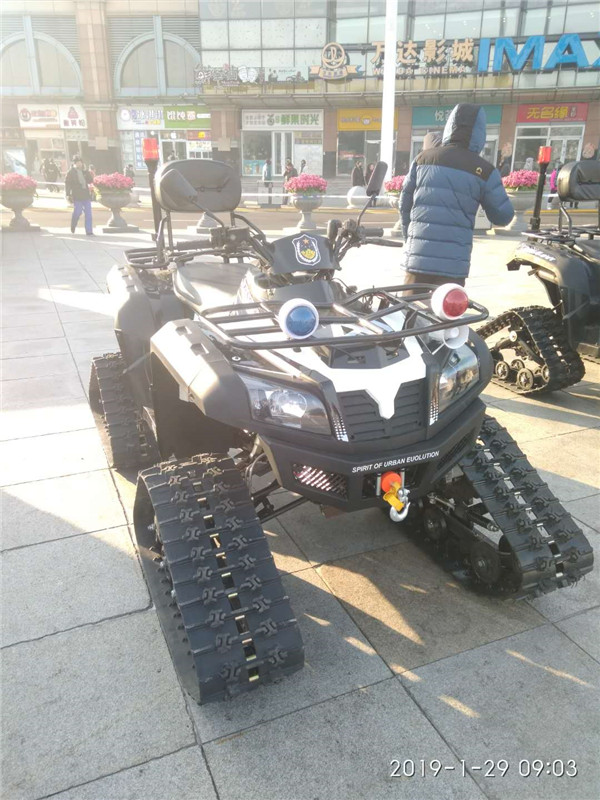 警用全地车型,该车简单实用,越野性能好,具有多种用途,且不受道路条件的限制,使用履带式结构,可以一年四季在冰雪路面、沙滩、沼泽、街面上行驶,适合执行各种警务任务,可以成功解决北方雪区冬季出行的难题,尤其适合雪地救援、森林巡防、管线巡查、边防巡逻等方面的使用。