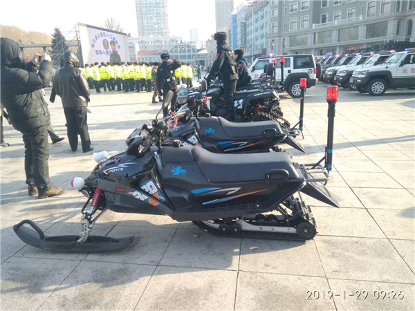 沐鸣2雪地摩托车,针对北方特殊气候条件以及实战需要,加大冰雪路面快速反应能力,适合在冰面、滑雪场等场地开展冰雪路面执法。