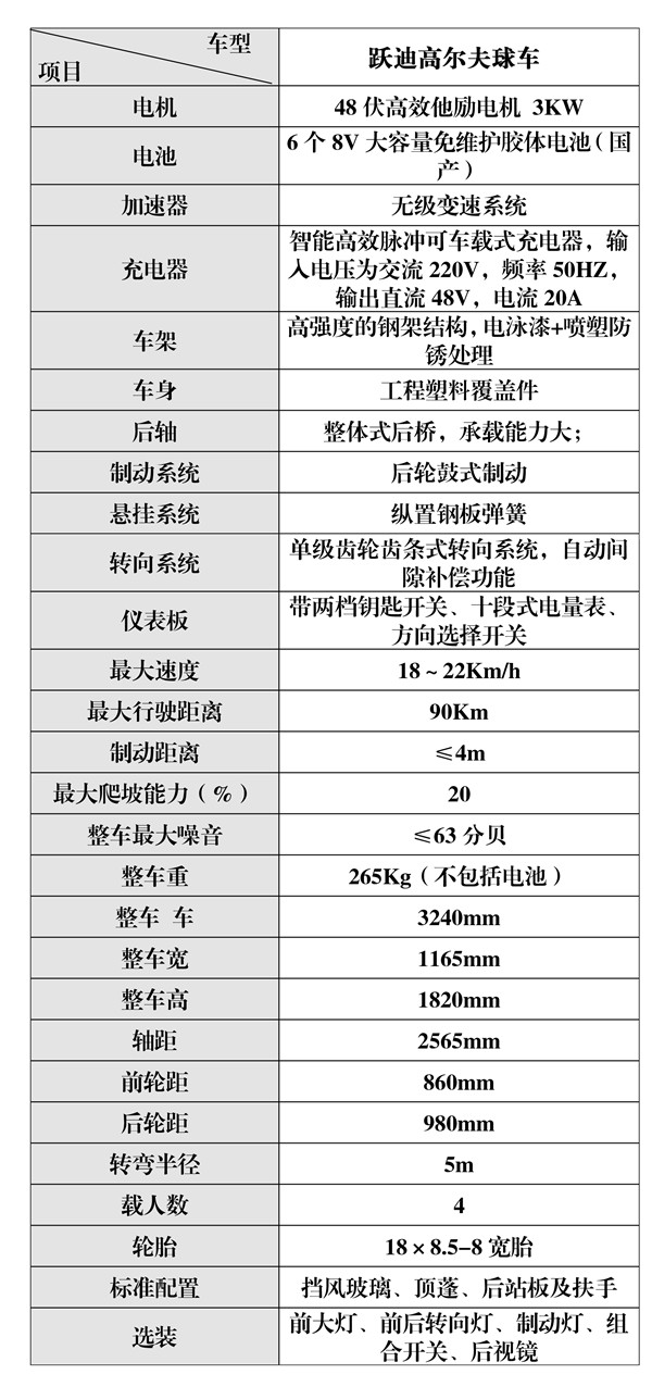 专门为高尔夫球场开发的场地用车。该车地盘低,上下方便,转弯半径小,操纵灵活,行驶平稳,整车载重性能优越,行驶中平稳颠簸受力小,驾乘舒适。