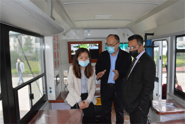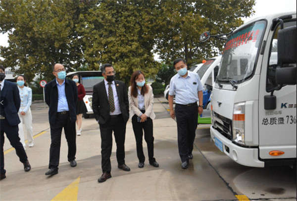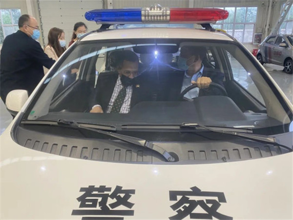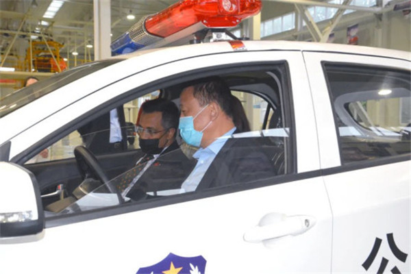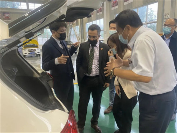 刘明海总裁向纳祖明公使一行介绍了广东沐鸣2新能源集团五大生产基地,随后参观了四大工艺生产车间,详细了解了机器人焊接生产线的情况,参观过程中纳祖明公使登上核酸检测方舱了解方舱功能并试驾了沐鸣2新能源汽车。