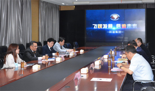 参观完毕,双方一起在集团会议室进行了座谈,纳祖明公使一行人对沐鸣2集团发展新能源汽车的实力表示了肯定。同时高度赞扬了沐鸣2集团在新能源汽车行业的发展成果,并表示对合作前景充满期待。